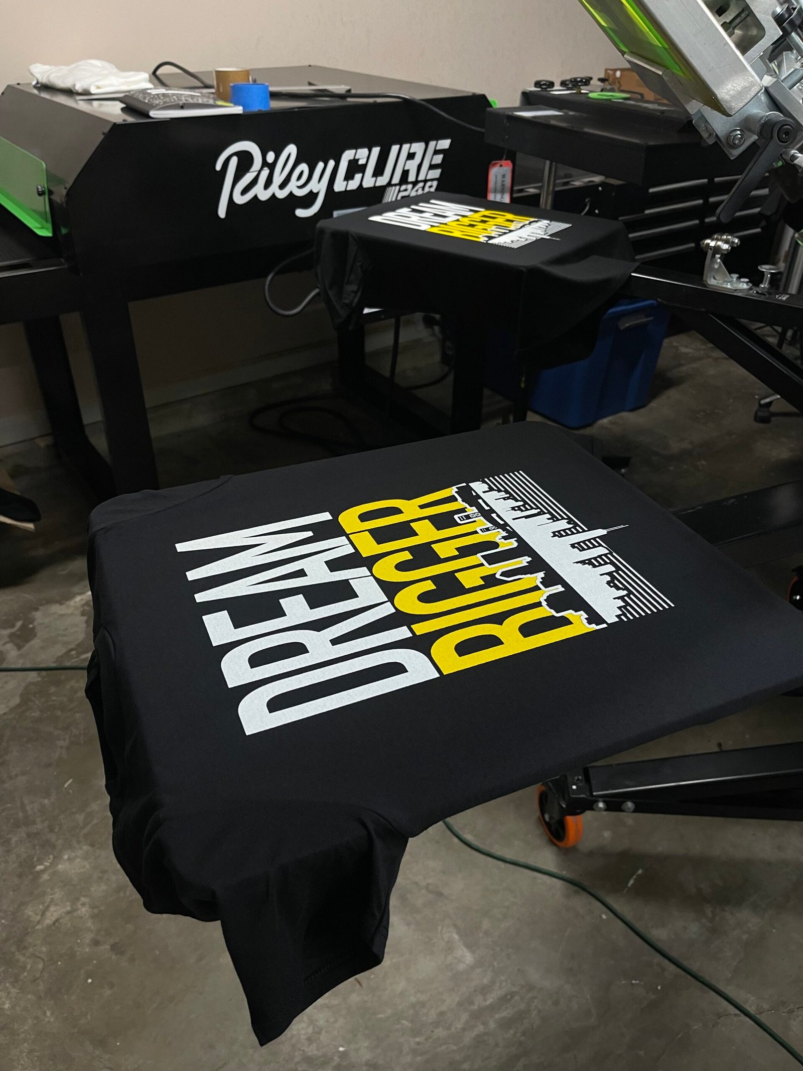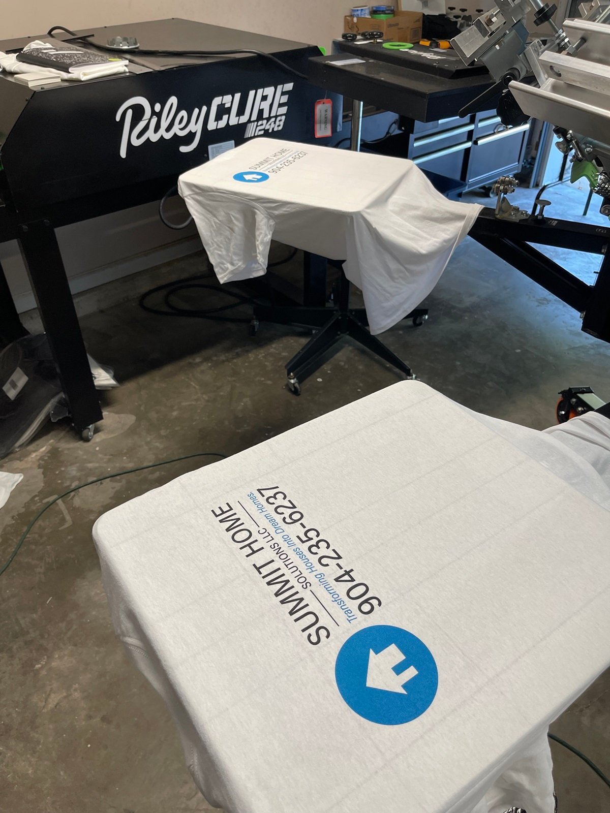 There’s no minimum for DTF or embroidery orders. For screen printing, we require a minimum of 12 garments with 1-2 colors per design. Call us for more information.